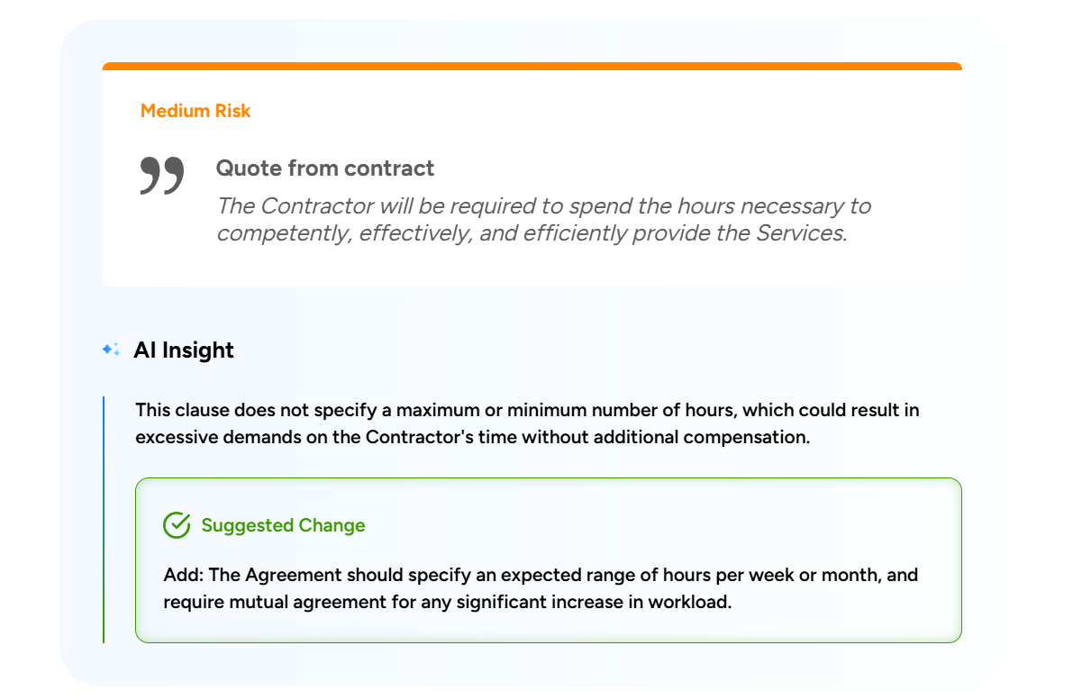 For businesses that handle multiple service agreements yearly, traditional legal review can create bottlenecks in procurement cycles and inconsistent standards across different lawyers or reviewers.